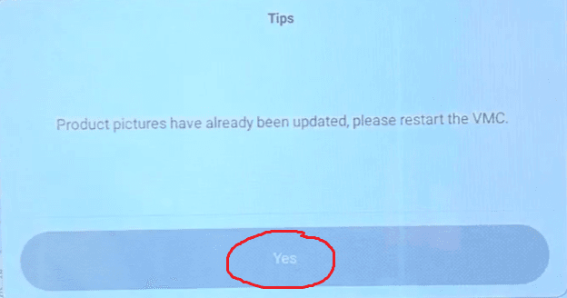 After the product information is downloaded, follow the on-screen prompt to restart the machine. Once restarted, your products should appear automatically on the sales screen.