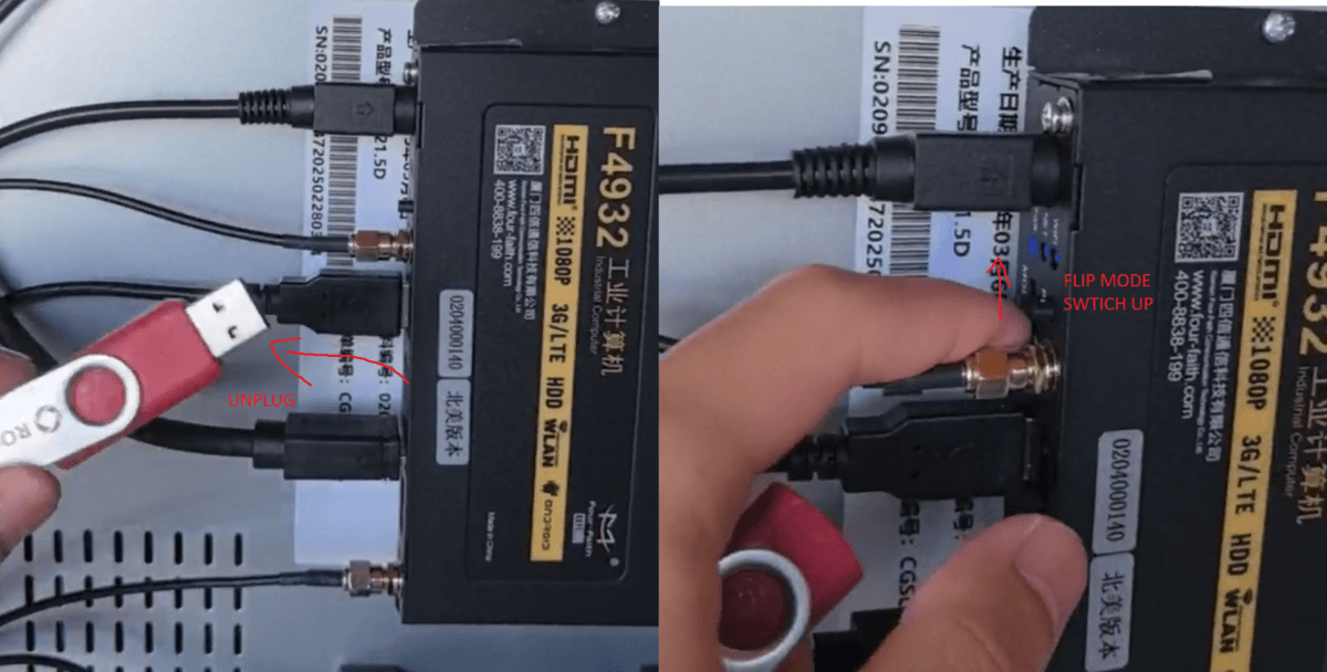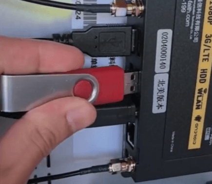 To update your machine’s software, simply download and copy the APK file onto a USB drive, similar to the one shown here. Then, insert the USB into the port located on the black box inside the machine.
