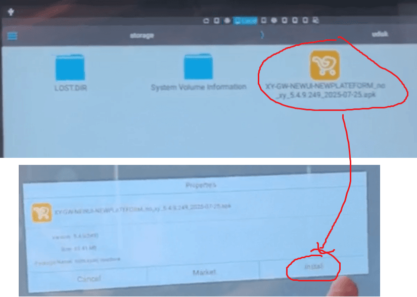 Next, navigate back to Local and click on your USB drive and then just tap the APK file. A dialog box will appear—click Install, then confirm by selecting Install again. Wait for the new firmware to finish installing.